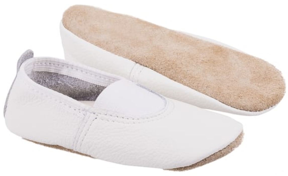 Туфли гимнастические белые материал - натуральная кожа Легкая гимнастическая обувь на тонкой и мягкой подошве Подойдет для занятий танцами, гимнастикой, акробатикой и многими другими видами спортаХарактеристики