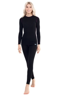 Термобелье женское (комплект). Полотно представляет собой комбинированную ткань из полихлопка, что позволяет как сохранять тепло, так и избавляться от избыточного потоотделения, возникающего во время занятий зимними видами спорта. Прекрасно подойдет для игры в хоккей, катания на коньках, беговых и горных лыж, катания на тюбингах и т.п. Двухсторонняя терморегуляция. Плоские швы, исключающие натирание тела при использовании термобелья. Данный комплект термобелья также подходит для туризма и отдыха на природе. Антибактериальная обработка ионами серебра. Нейтрализация запах пота. Для достижения максимального эффекта используйте 3-х слойную систему одежды напоминающую фетр или трико. Область применения от +10 до -25 градусов Цельсия. Состав : 50% хлопок, 50% полиэстер, плотность 200 г/м.Характеристики